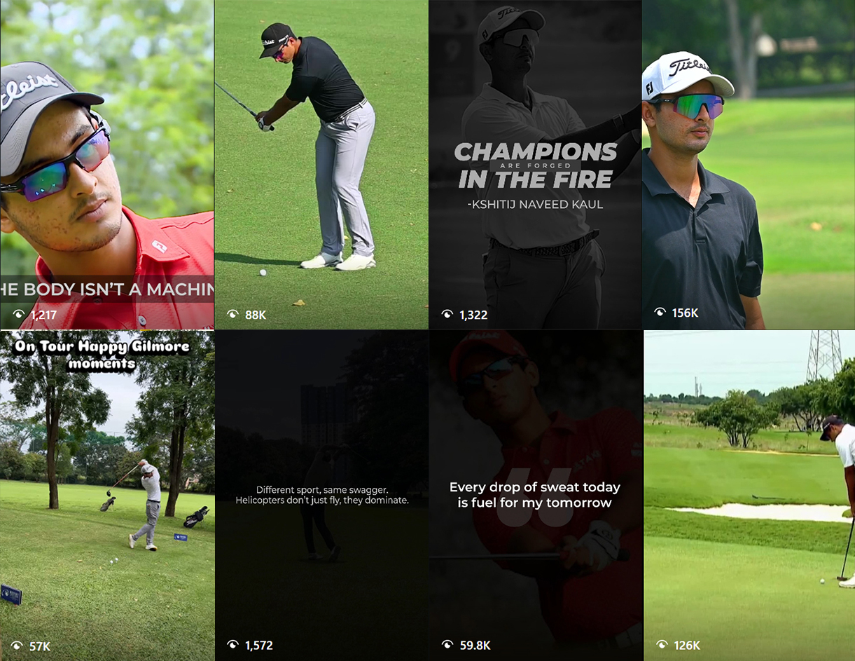 Video content played a key role in showcasing the dynamic side of Kshitij Naveed Kaul’s journey as a professional golfer. Through short-form videos and reels, we highlighted tournament moments, practice sessions, swing techniques, and glimpses from life on tour. These videos helped translate the intensity and precision of the sport into engaging visual storytelling that resonates well on social media. By focusing on motion, authenticity, and key highlights from the game, the video content made the sport more immersive for viewers while strengthening Kshitij’s connection with his audience.